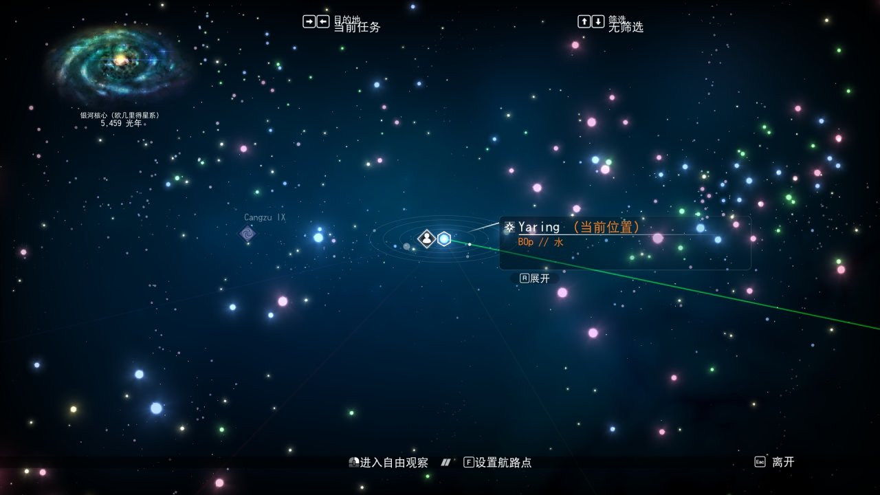 到星系中心前需要經過一個特定的恆星系,如果恆星系是紅/綠/藍的話不用去造相應的技術,只要一直往旁邊星系躍遷,大概達到1000多光年的距離後遊戲會把你導到另一個特定恆星系。