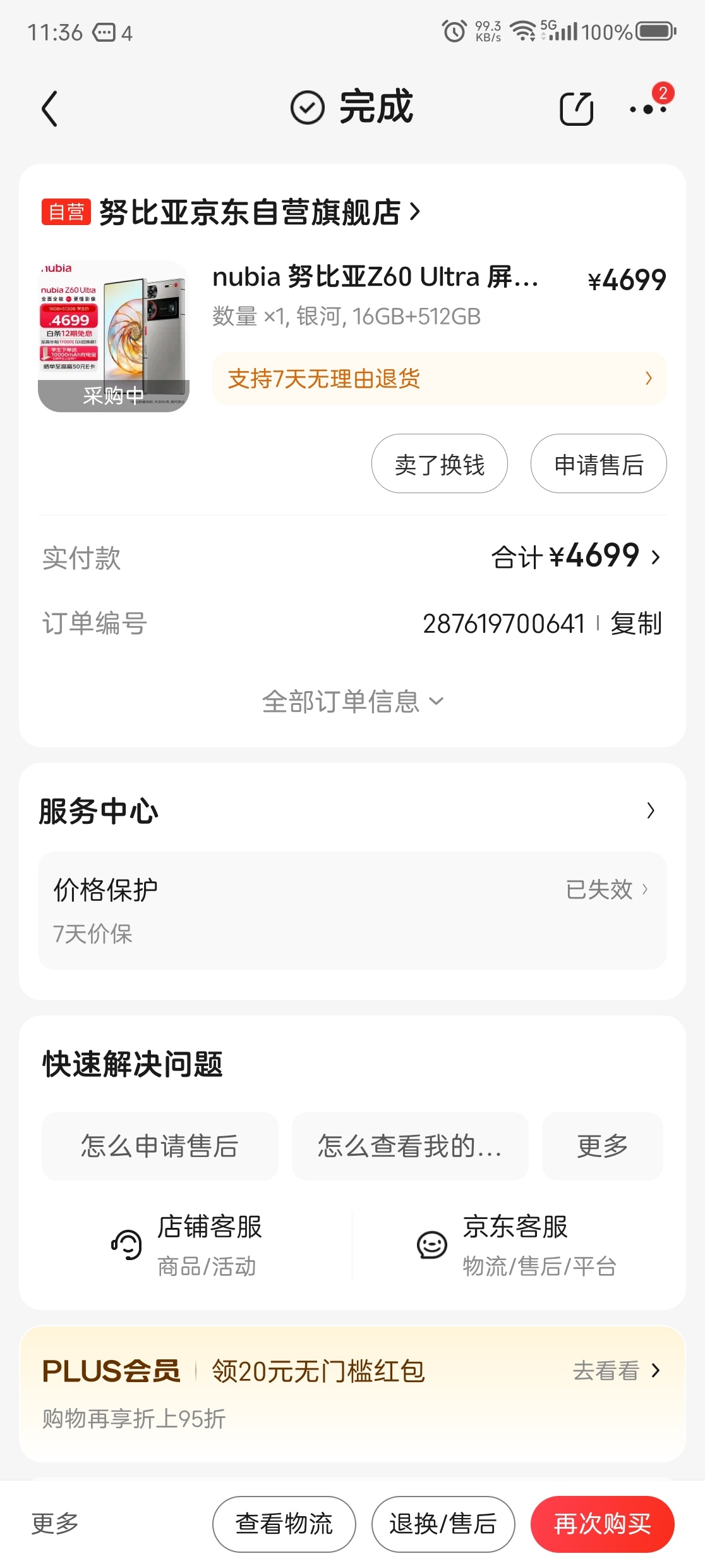 最後補一下我的購買訂單截圖,這臺手機是我自費購買的。