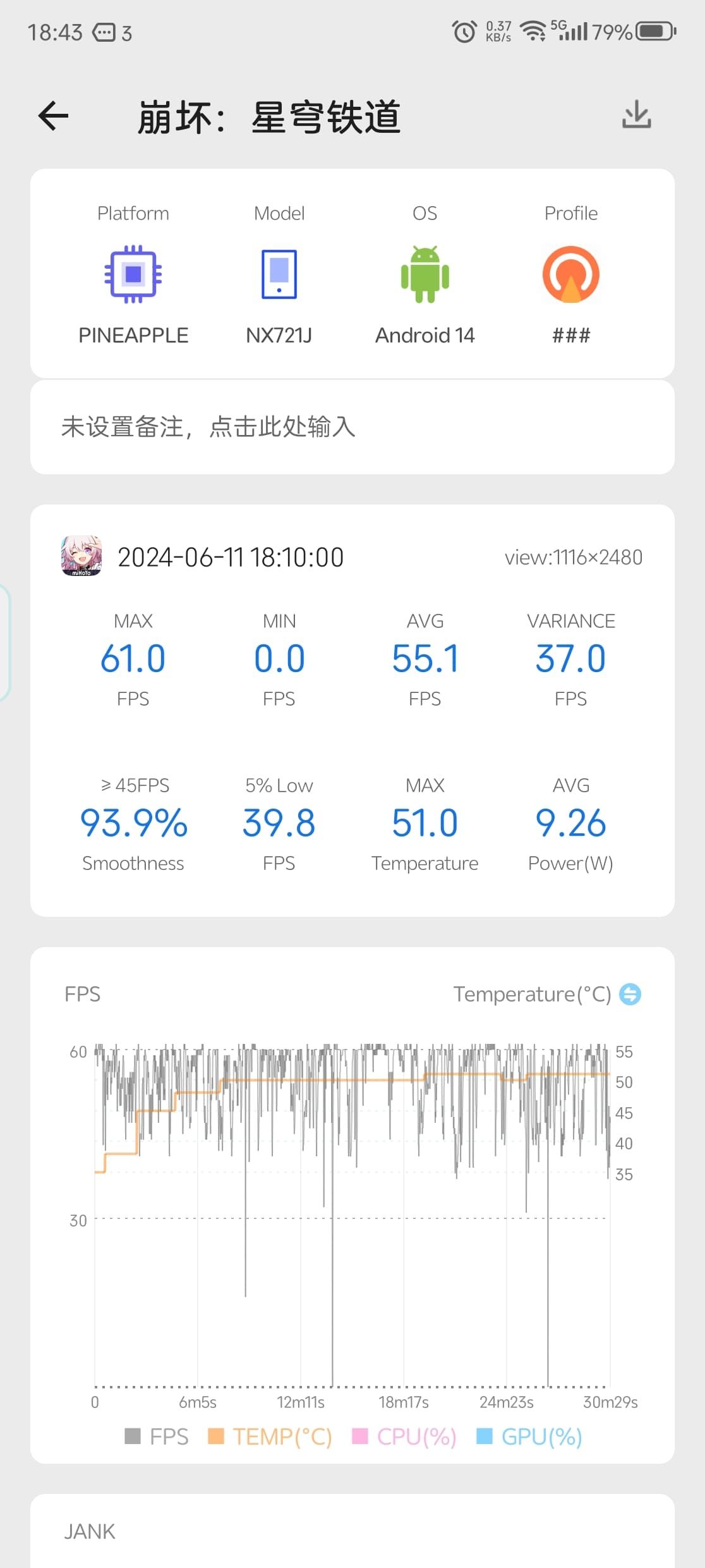 別看這個幀率曲線跌宕起伏,但已經是非遊戲手機裏最好的了。