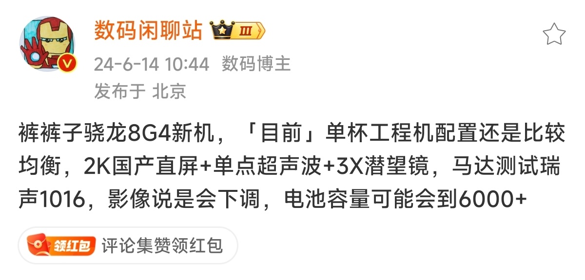 iQOO 13光是骁龙8 Gen4+2K直屏+6000+mah电池这套组合就“无敌”了,十三香定律似乎对各家厂商来说都适用!