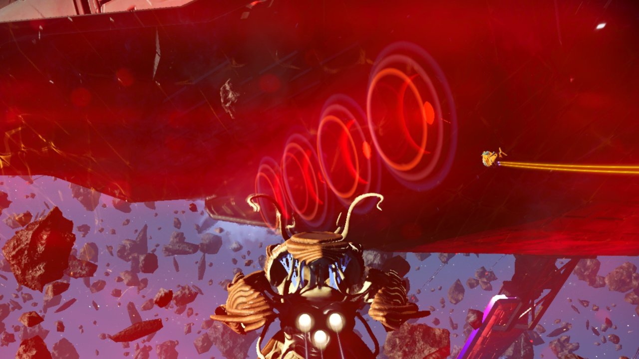 飞到无畏舰的尾部把这四个引擎打掉否则它会跑掉的。