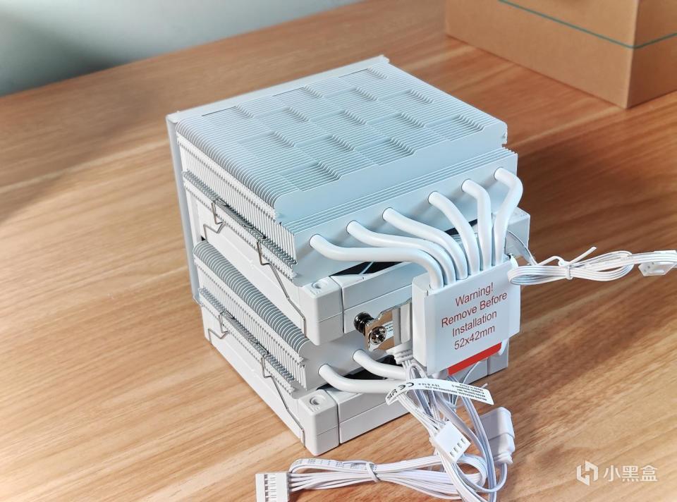 这款散热器也是纯白色的,双塔双风扇,6根微重力热管,纯铜底座,看上去就非常的酷,真是白马小王子的感觉。它的散热能力高达260W。