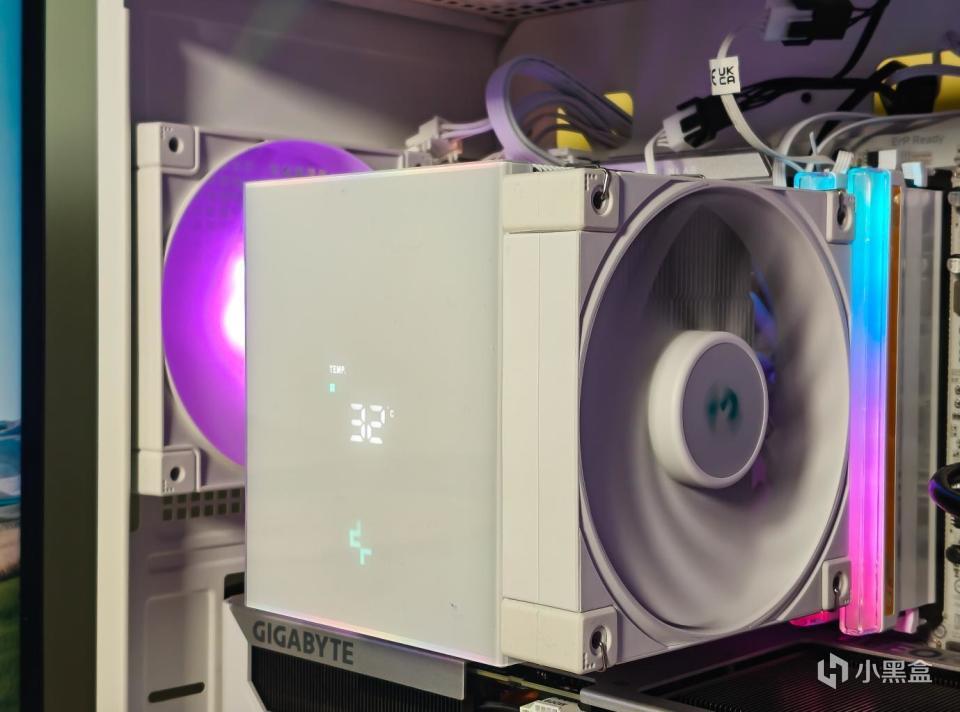 可看到,在风冷散热器的侧面有CPU温度的显示。还可以通过软件设定显示其他参数或者轮播。