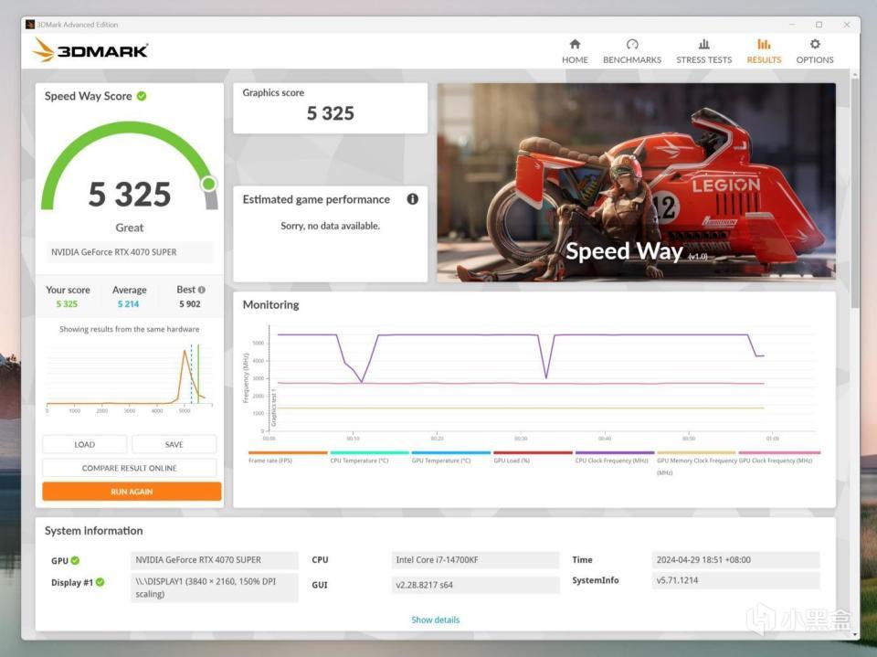 运行3DMARK SPEEDWAY测试,图形得分是5325分。