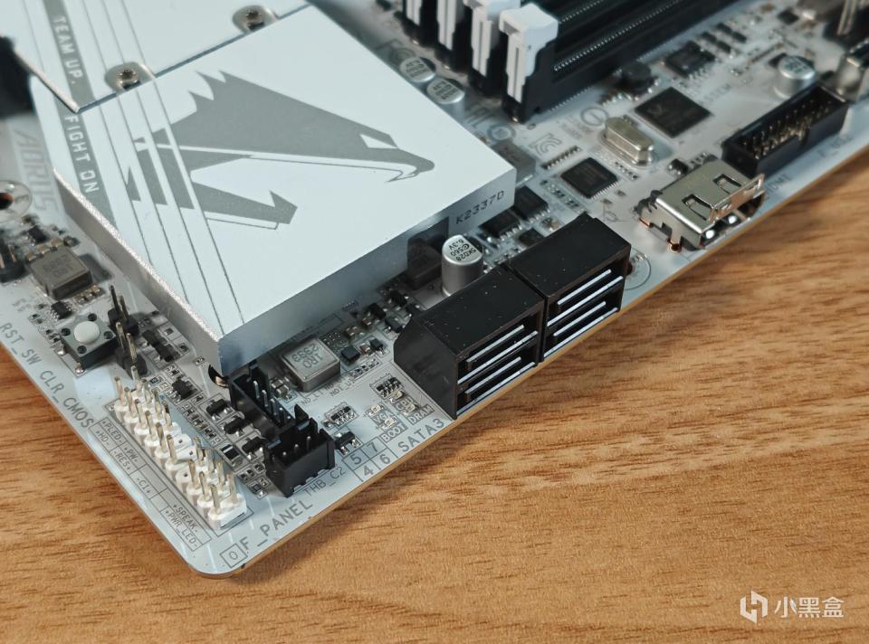 板子做工精致,接口类型满足需求。在右上角有CPU_FAN、5VARGB彩光、主板供电,以及另外一个SYS_FAN接口。