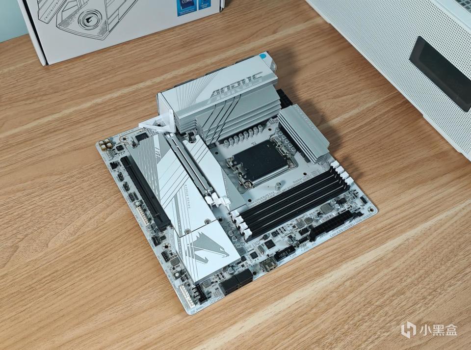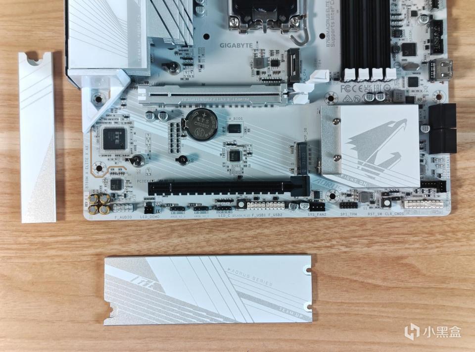 技嘉的这款B760M 冰雕X,应该是可以称为全白色主板,因为除了内存槽、各个接口、芯片外,其他的部分都是白色的,甚至连内存槽两侧的卡子都是白色的,同白色主题非常搭配。白色也不是惨白的那种,略微有些灰色,并且可以看见各种图案,整体富有变化。