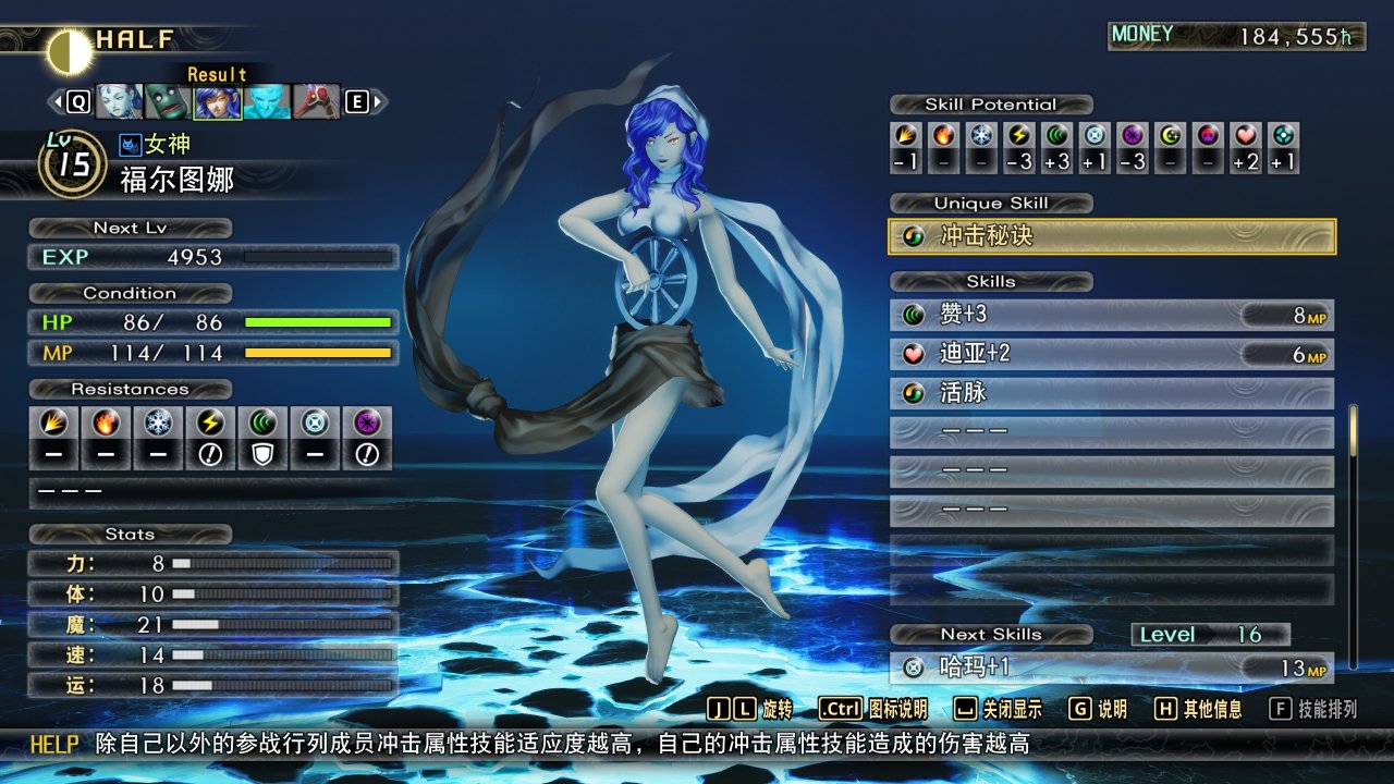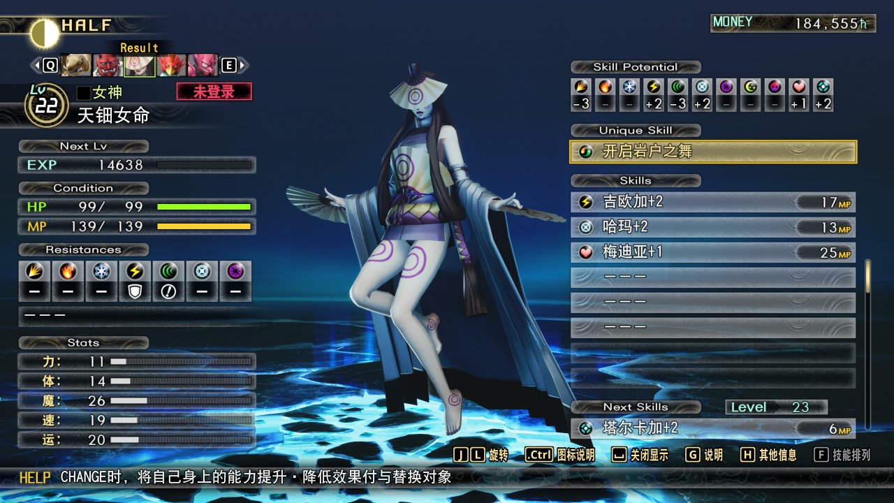 戰力:特色是自己身上的BUFF可以給替換的仲魔 光電法系,可以部分替代多緒,天鈿女命也是《真女神轉生》中我個人覺得最澀的建模之一了~