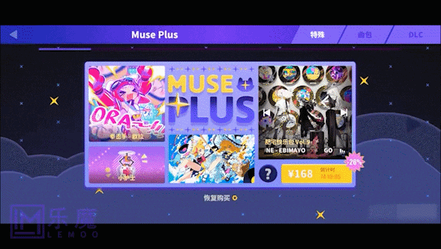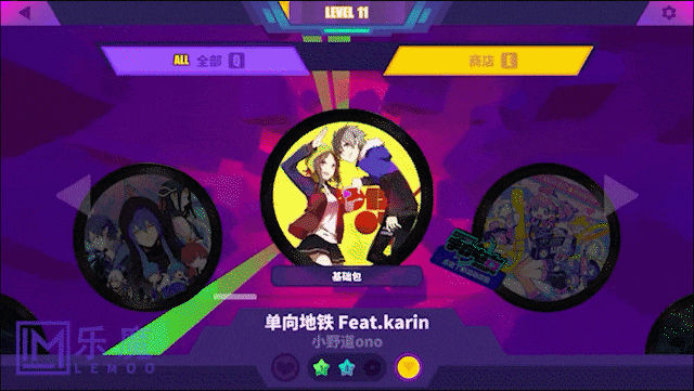 例如,在選擇某一個音樂包的時候,屏幕上的元素會隨之跳動和擴散,形成類似漣漪的視覺效果。而在過場和加載畫面上,平面元素通過旋轉、縮放、漸變等動態變化,增強了遊戲的流暢性和沉浸感