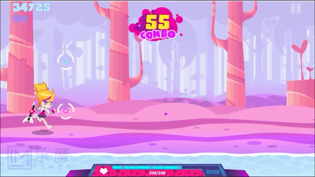 而且在動效方面,《喵斯快跑》的設計團隊十分注重平面圖形的動態變化。遊戲中的每一個動效都不是隨意添加的,而是緊密圍繞着音樂節奏和玩家操作進行設計。