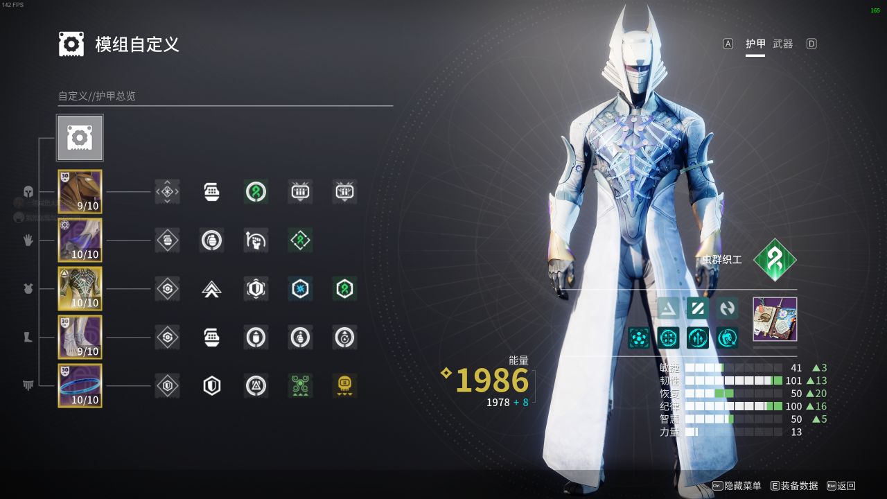 頭部:帶傅絲虹吸模組產光球然後帶彈藥搜尋模組