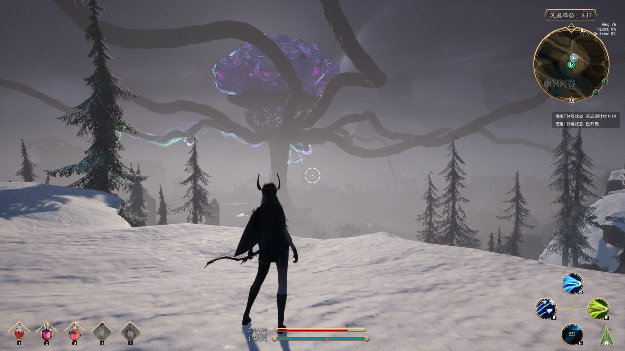 《狄拉克之海》demo地圖就已經比較巨大,這分爲了冰裂峽、巨人頂、禁忌之湖等共七個小場景。遊戲中不只是樹木枝葉、水面波紋比較細節,在大場景時它也十分宏偉,具有很強的設計感和美感。你敢相信這是虛幻引擎小團隊做出來的遊戲嗎,從地圖設計、怪物種類、玩法豐富度來說,這已經是一部完成度很高的作品。