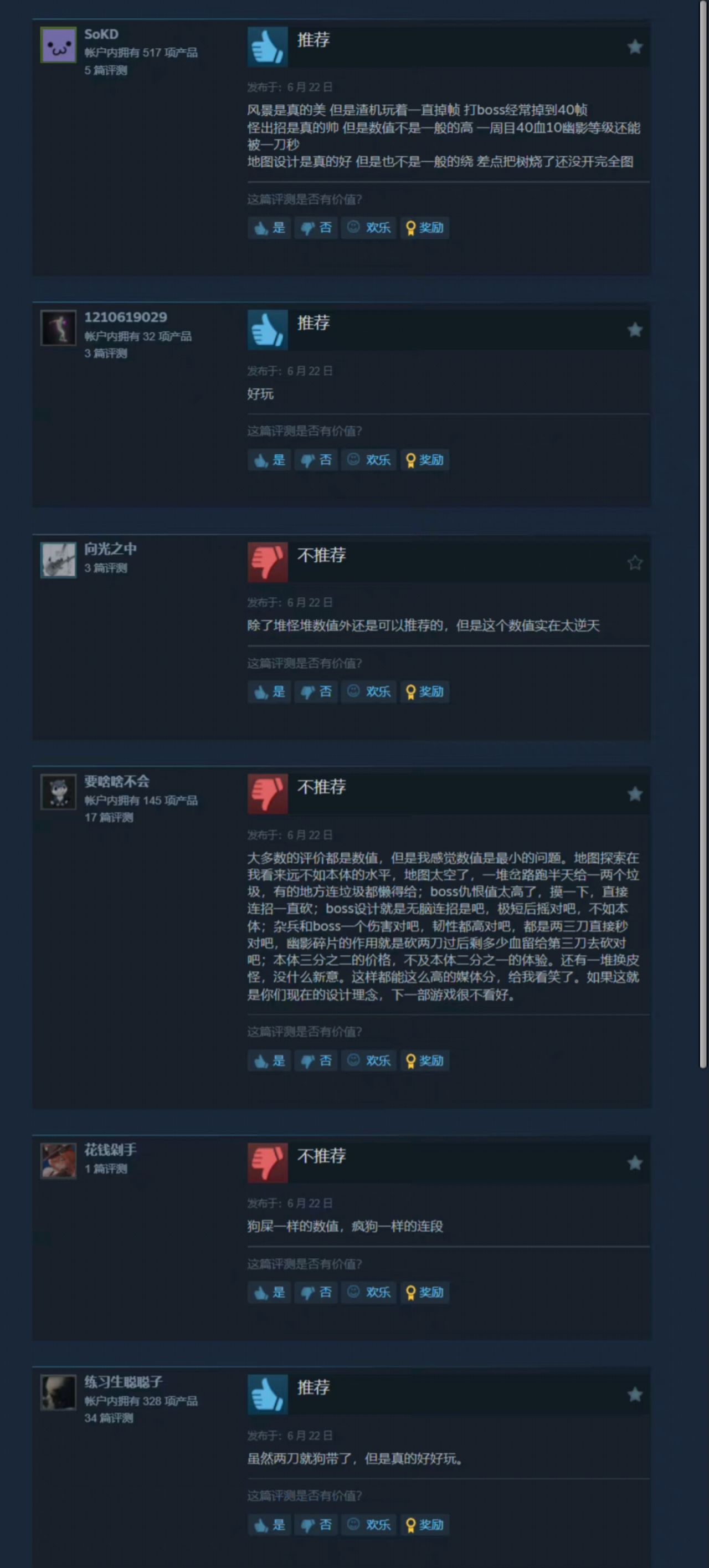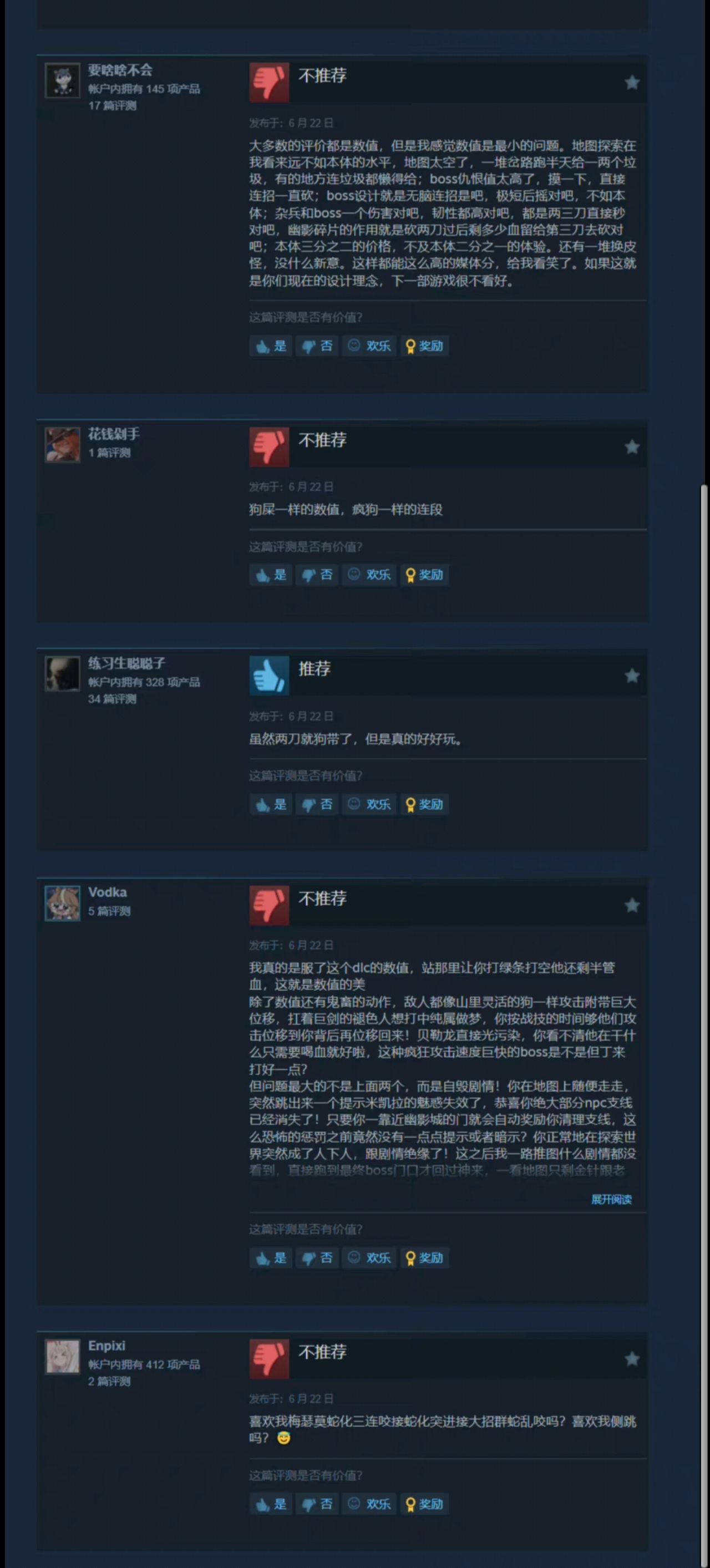 玩家主要詬病的情況:媒體過度吹捧、數值往死裏堆、鏡頭調度有問題、各種BOSS招數過多、強化機制不合理、挫敗感強等等。