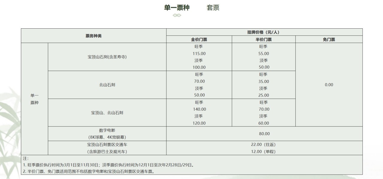 景区门票: 120元/人 (旺季) 100元/人(淡季)