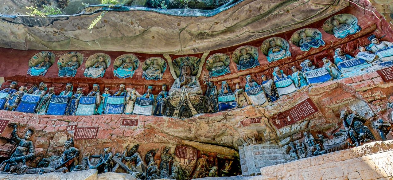 大足石刻始建于初唐,鼎盛于两宋,是集儒、释、道三教造像于一体的大型石窟造像群.