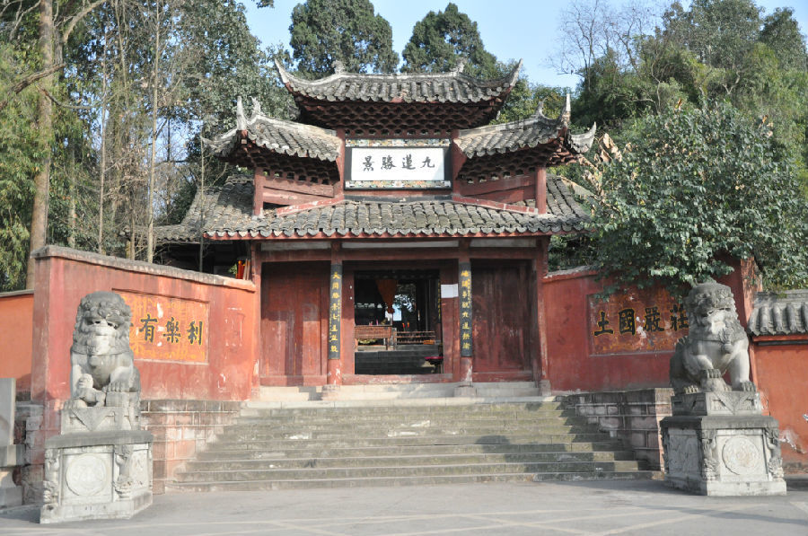 观音寺古名平盖治,为崔孝通修真之处,宋淳熙八年创建,毁於元季兵燹之中,明宣德年间依治重修,至弘治三年竣工,共建殿宇十二重.明末清初遭毁损,清康熙、乾隆、道光年间修葺一新,为川西著名寺院.