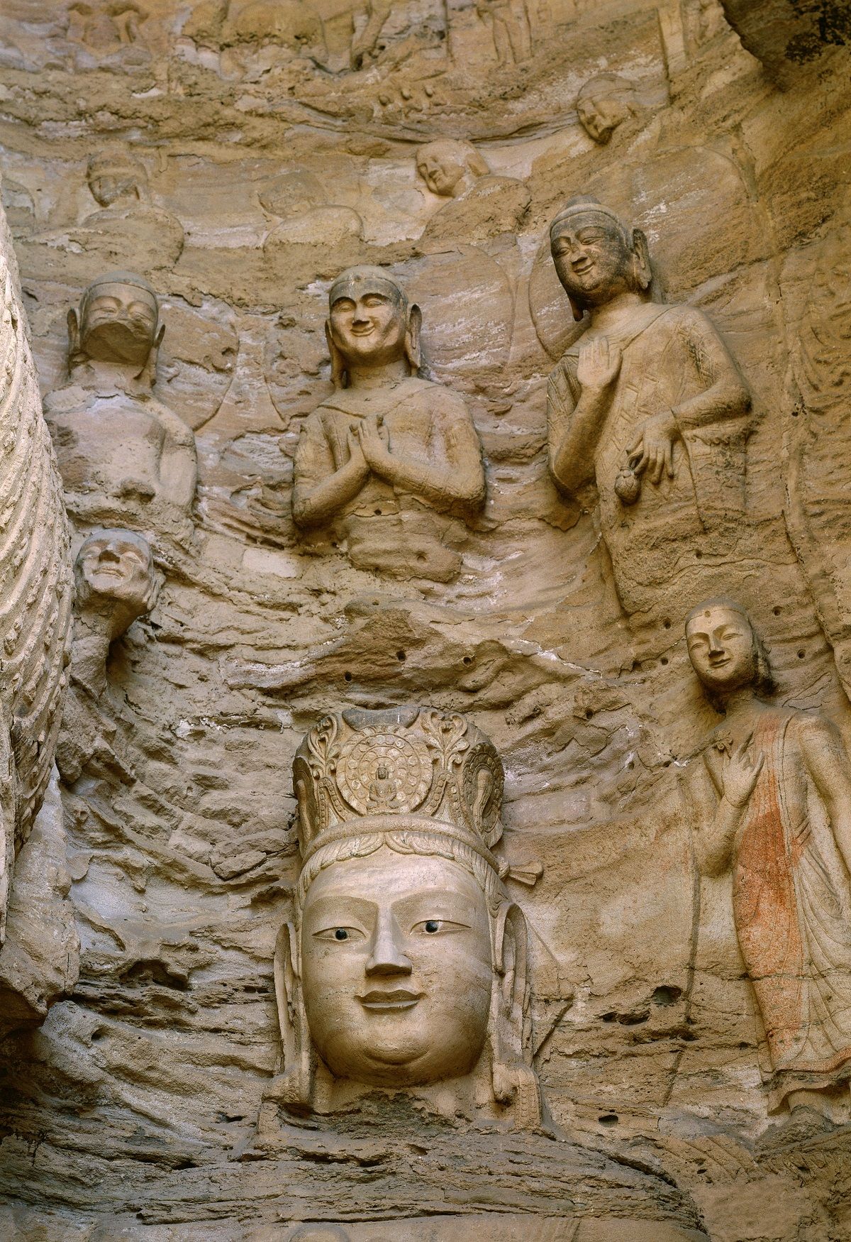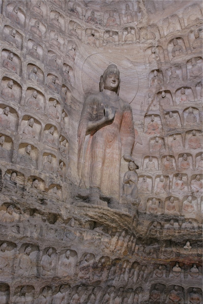 冈石窟的开凿历时约150年,历经北魏、东魏、西魏、北齐、隋、唐等朝代,现存主要洞窟45个,大小窟龛252个,石雕造像59000余尊,是中国石窟艺术宝库中的瑰宝.