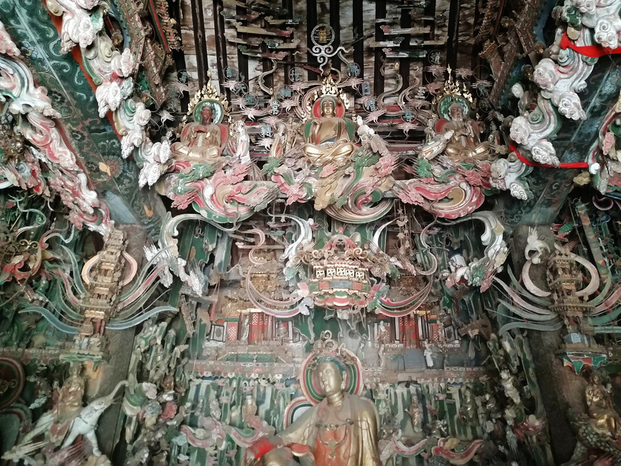 镇国寺的建筑,以万佛殿为最早,虽经历代多次重修,但仍保持了五代时的风貌,是中国佛教寺院中现存的三处五代建筑之一,其中的彩塑,更是全国寺庙殿宇中保存至今的唯一五代作品.