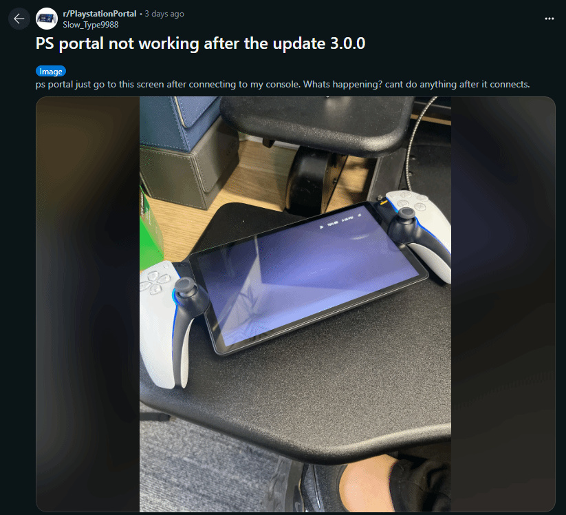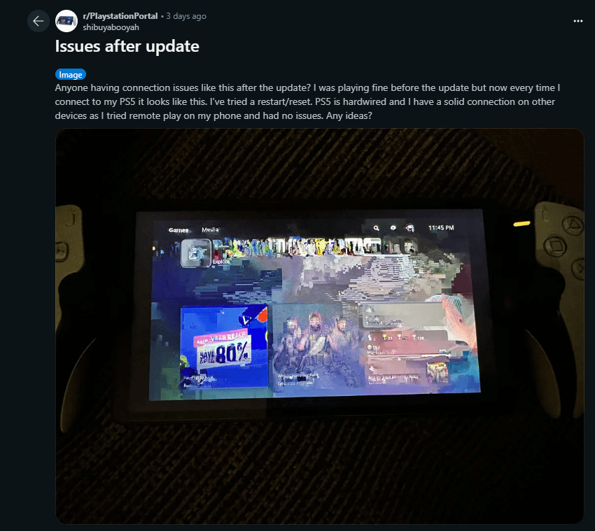 部分用戶反映,升級後他們的PlayStation Portal頻繁遭遇網絡及主機連接失敗,並且畫面品質也有所退化。衆多玩家紛紛遭遇相似困境,甚至有玩家報告了系統崩潰的嚴重情況。