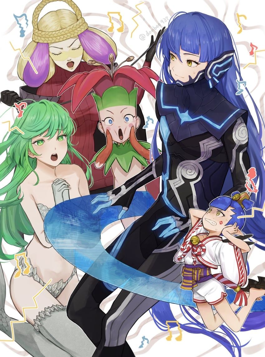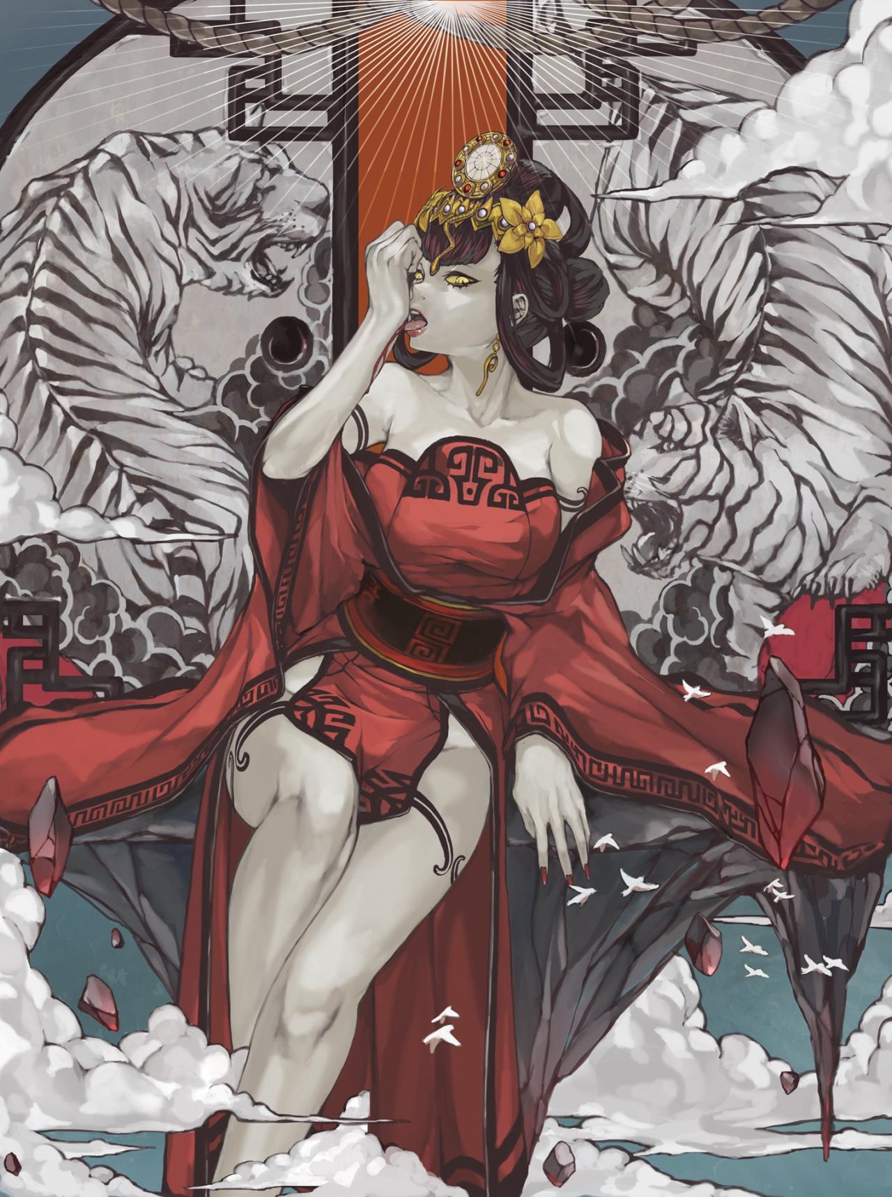 其中我個人覺得最好的部分大概是來自於日本神話的人物,比如天鈿女命——紫色妝容散發着死亡感,扇子下面露出的大白長腿又十足的澀氣。