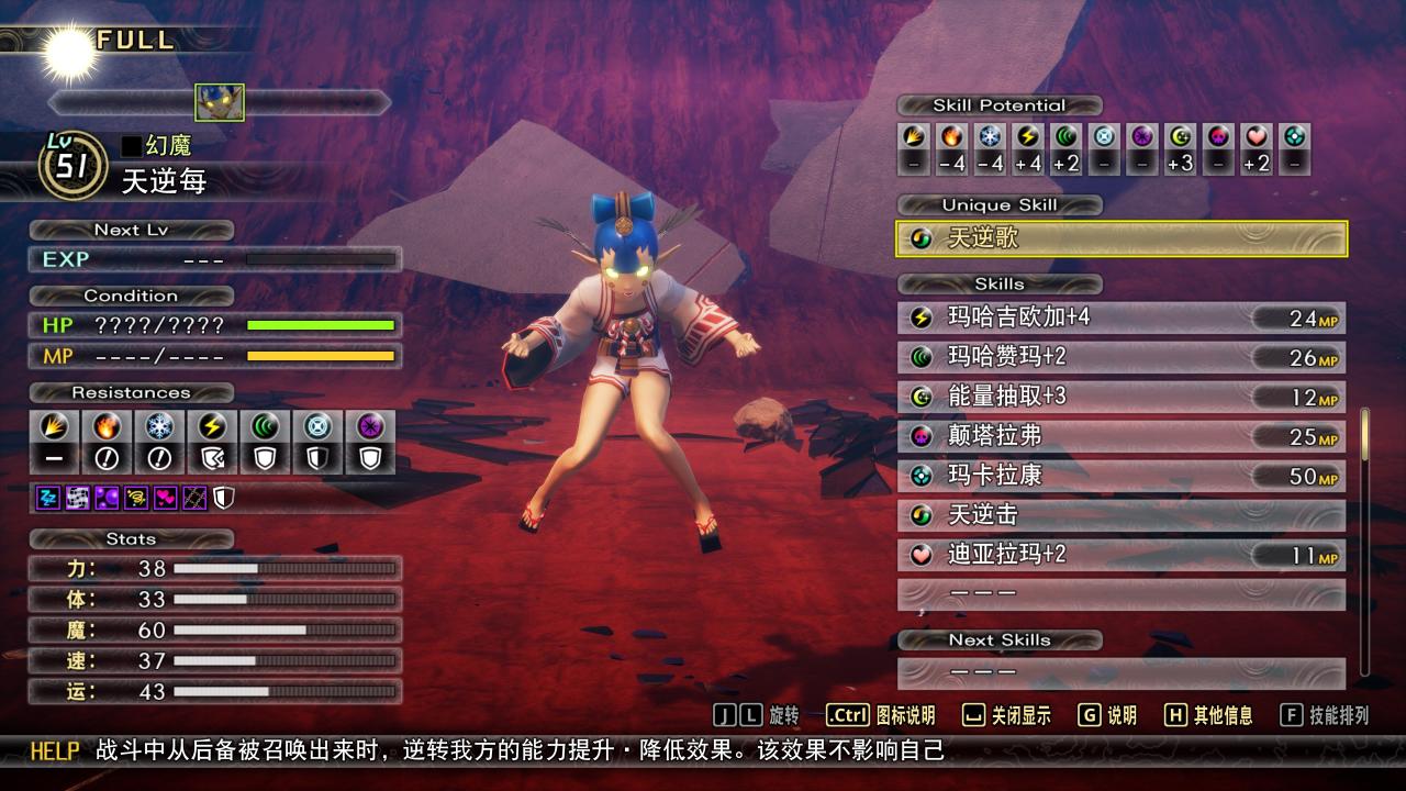 然後我們觀看仲魔的“角色卡”,會發現還有一項指標,那就是“種族”——比如女神、鬼女、妖魔、夜魔等,這些種族決定了他們能使用的特色大招,在遊戲中完成各種任務都會獲得和仲魔種族相關的內容,從而解鎖更多的技能,比如夜魔是萬能傷害的特色吸取HP和MP、聖女是復活所有的已陣亡仲魔。