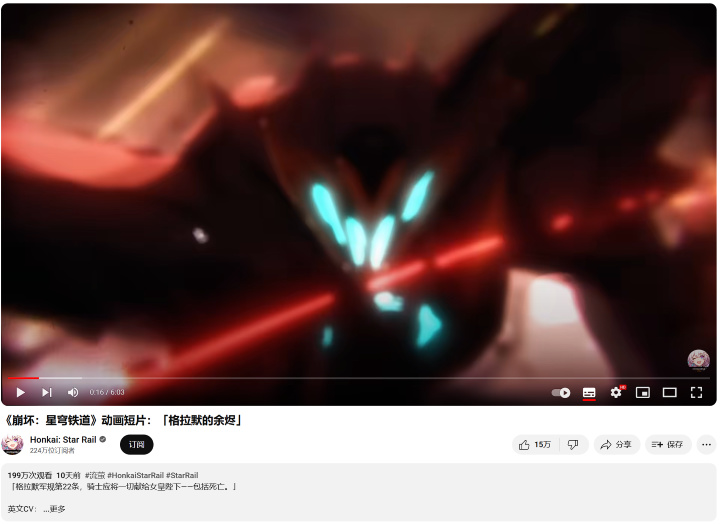 優秀的外觀設計不僅擊中了國內玩家的二次元喜好,也引爆了國外遊戲宅的熱情,畢竟機戰題材在國外向來是最受歡迎的類目,流螢的動畫短片“格拉默的餘燼”在youtube上收穫了接近兩百萬播放和15萬點贊,對應官推高達六千轉發,評論區對流螢的外觀設計讚不絕口,也帶動了對短片劇情和流螢身世的熱烈討論。