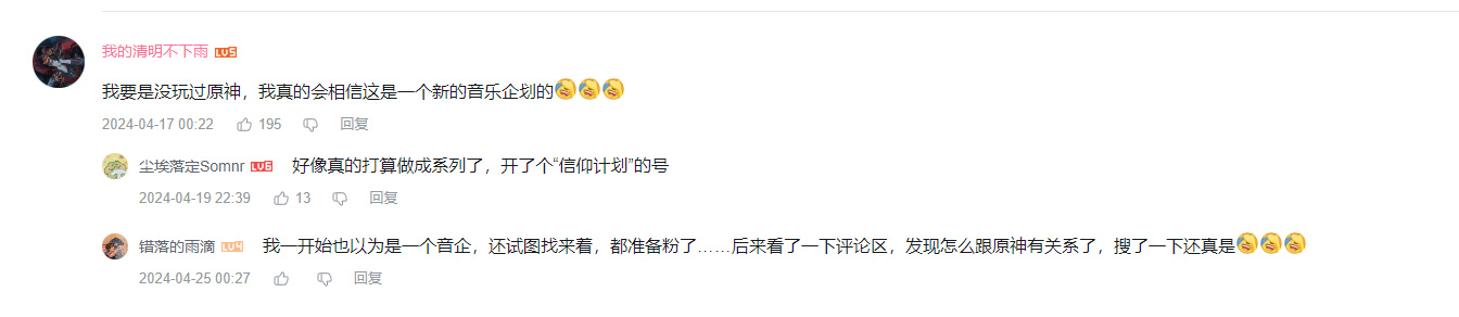 而這位天月如今也成爲了原神玩家,他只用了16天就將進度推進到了楓丹地區。在之前舉辦的原神同人特別節目“提瓦特映像節”中,這位大佬也爲原神玩家們準備的曲目《Musication》也在全球各大平臺收穫了不俗的表現。