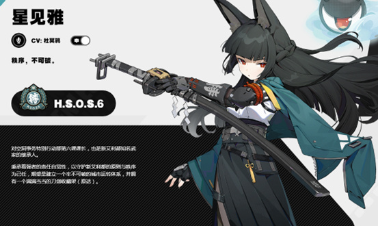而動作設計,星見雅也是突出了名字中的“雅”這個字,單手提着太刀亭亭玉立(就是這臉怎麼感覺像黑貓),一對獸耳一動一動的,雅緻之中透露着一絲可愛在裏面,服裝也是得大體的長裙,配上大衣,白色的襯衫配上領帶,給人一股優雅都市麗人的感覺,可以說設計的十分到位了。人設方面是對空洞特別行動科第六課課長,也是位於新艾利都知名武術世家的傳承人。這麼看,秉承着強者的責任與自覺性,帶着優雅與可愛,嗯,這是《絕區零》自家的神裏凌華。