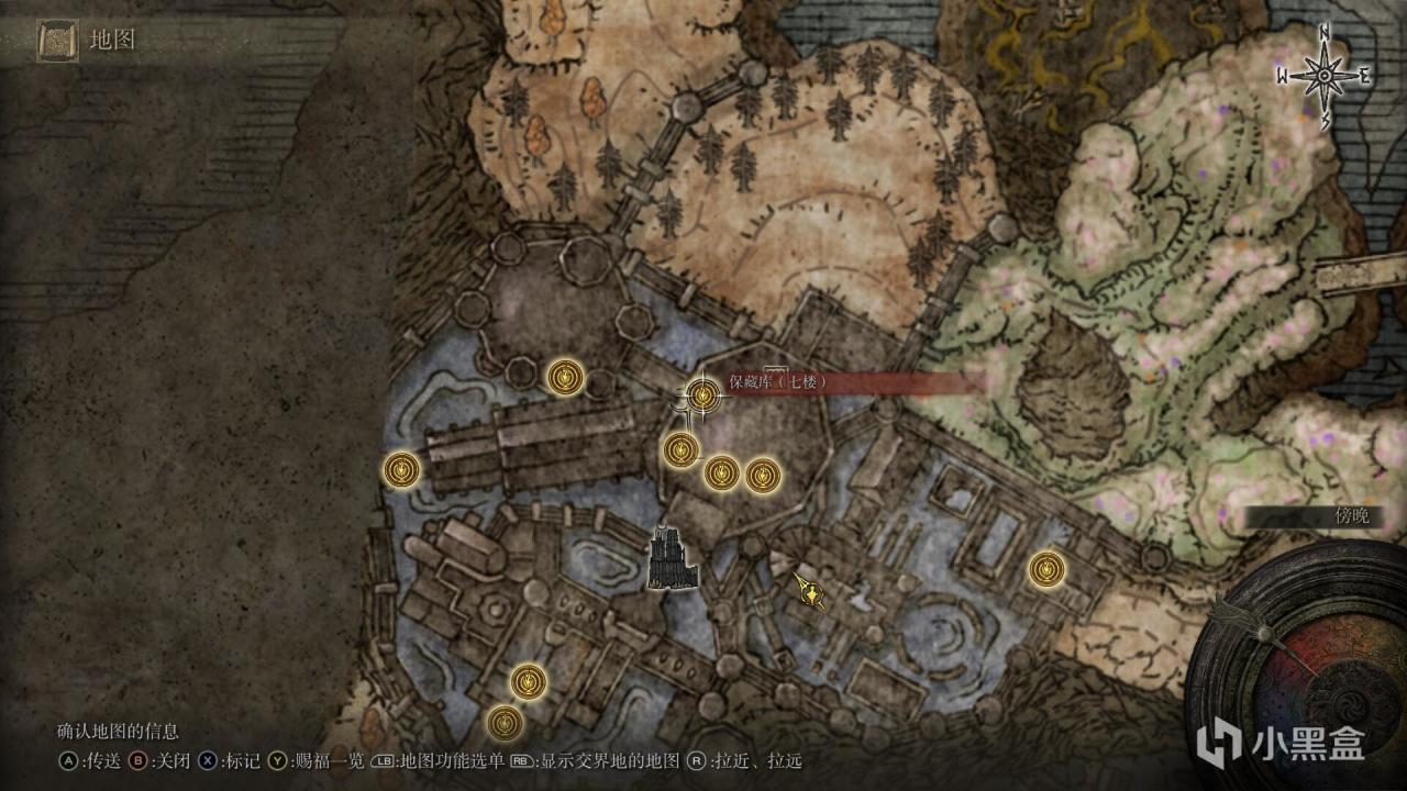 从幽影城正门进入,一路探索到保藏库七楼,NPC红狮子芙蕾雅所在的那个赐福。