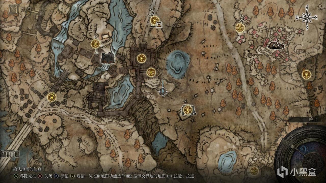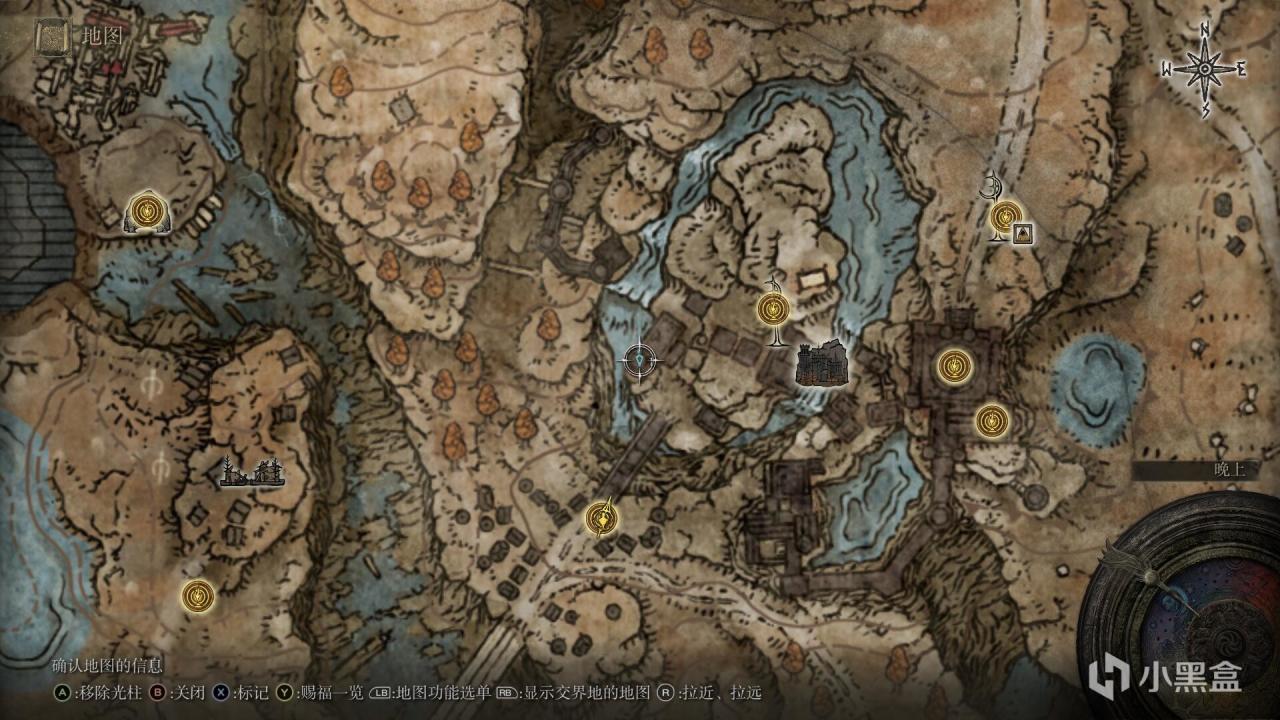 如图1号标点。城的前方赐福点出发左侧高塔上。