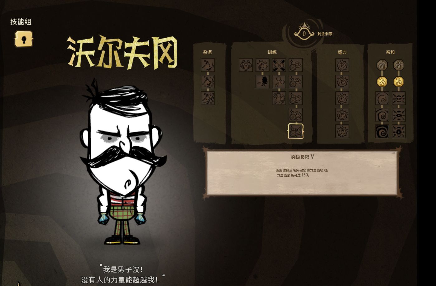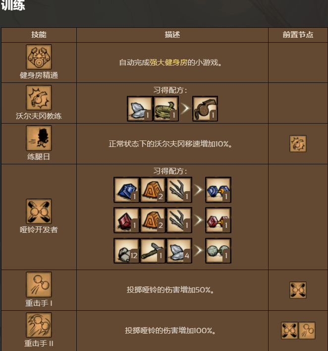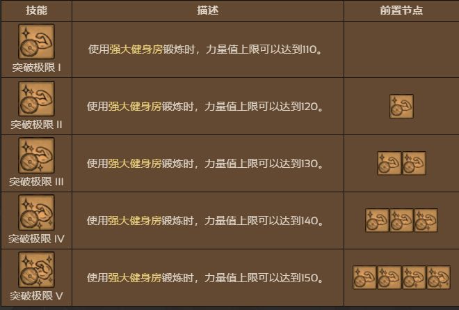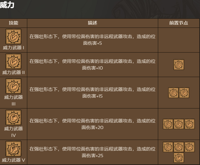 技能樹分四條線路:雜物、訓練、威力、親和(略)