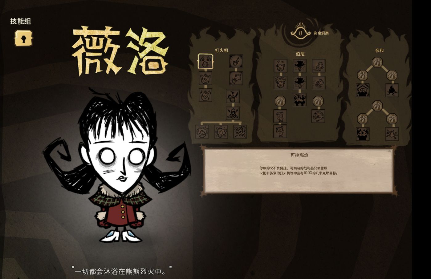 技能樹大致分三條線:打火機、伯尼、親和(略)