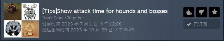 * 它會顯示獵狗還有幾天到達(如果世界生成中開狗了,那麼每隔一定時間會刷新狗來襲擊玩家,有普通的、火屬性的、冰屬性的),四季boss刷新時間。