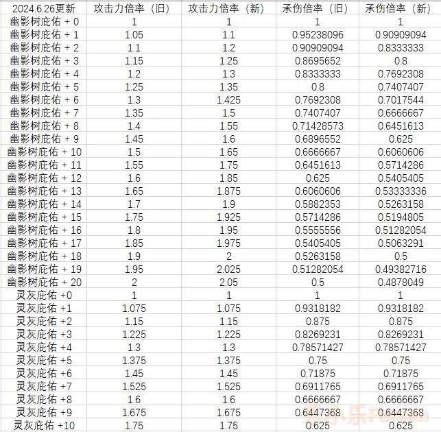• 優化DLC內容:新補丁優化了 DLC《黃金樹幽影》中“幽影樹庇護”和“靈灰庇護”對攻擊和減傷的強化曲線。前半段的攻擊和減傷加成增加,最高強化等級提供的加成略有提升。