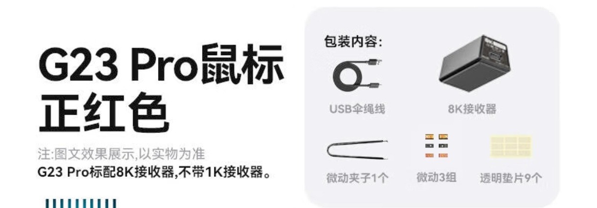 2.4g接收器*1(僅低配版爲2.4g接收器,Pro款爲8k接收器)