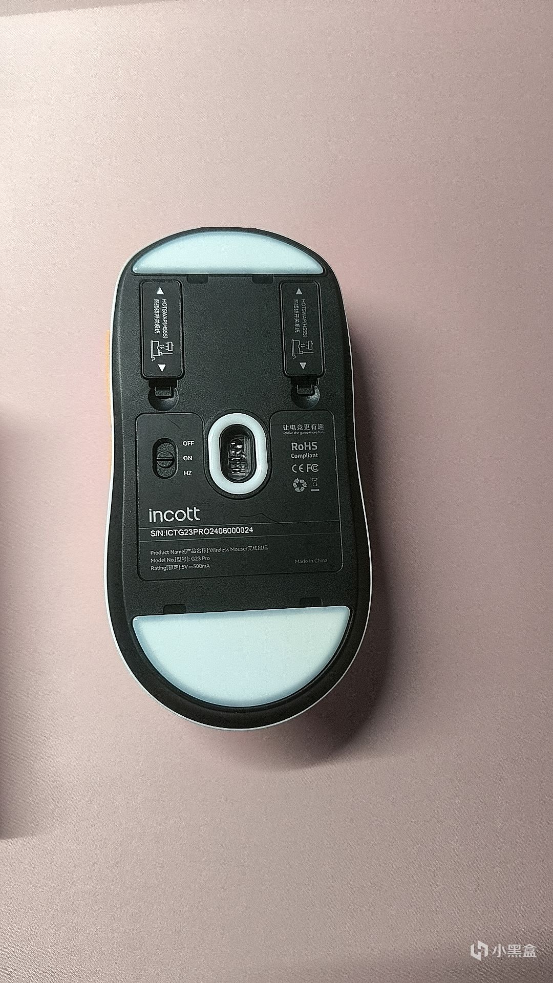 gpw的模具自然是不必過多介紹,收腰沒有那麼深,按鍵帶有引導槽,同時右側也同樣有引導槽。表面爲類膚的塗層,在不使用防滑貼的同時還可以輕鬆抓住鼠標,掌控感很好。(得益於模具的打磨,很多人反饋gpw太頂手心了)鼠標的背面只有一個三檔切換的撥動開關。開關第一檔爲開機,第二檔位關機,第三檔這是切換鼠標回報率功能鍵位回報率調整按鍵。鼠標的重量爲66.8g,搭載的是500毫安的大電池。在1k的巡航下有120小時以上的續航。