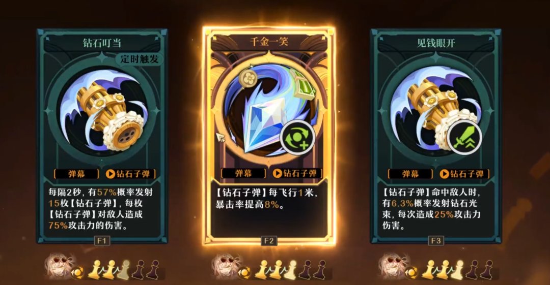 《無盡夢迴》給出了一個很巧妙的解法:它把所有角色的技能特效,都掰開揉碎,做成了肉鴿的構築元素,讓玩家能在遊戲過程中自由選擇、搭配。
