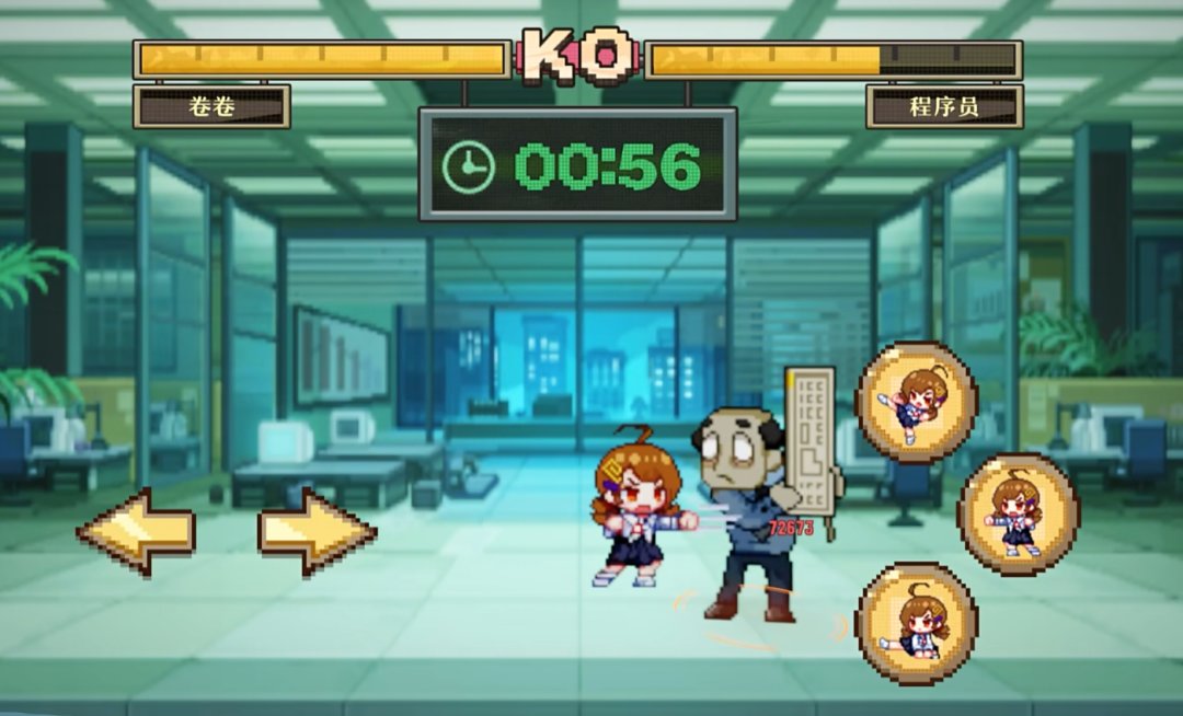 有的關卡,甚至會結合劇情演出,專門做出一些別緻的小遊戲。比如在第三章的BOSS戰中,進入第二階段前,玩家會進入一個像素格鬥遊戲關卡。