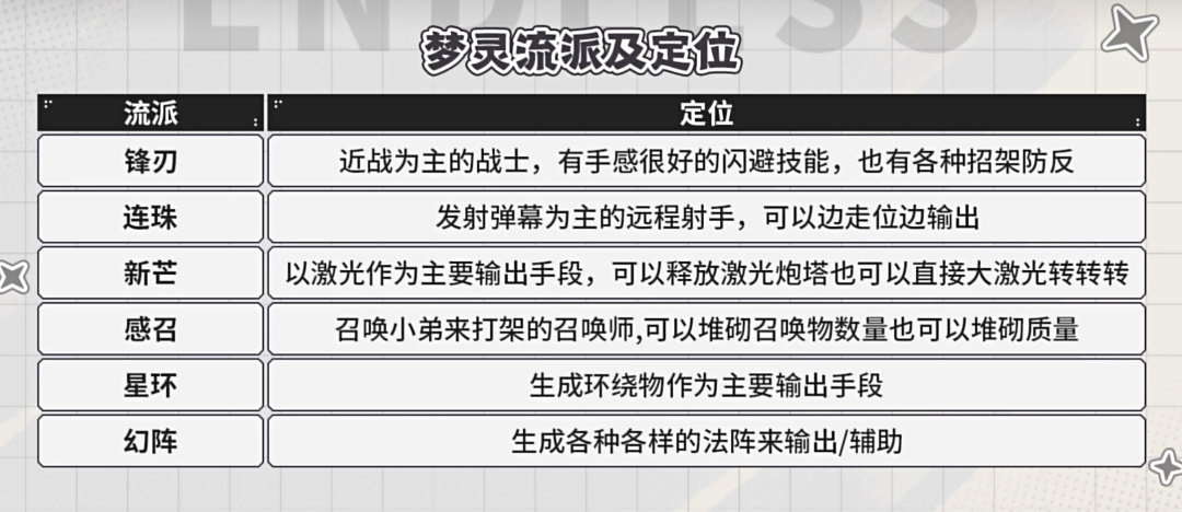 當然,這些角色和構築元素並非完全隨意發揮,而是被分爲六大流派——大致可以歸納爲近戰、彈幕、激光、召喚、環繞物和法陣。這個設計思路很清晰,它有助於玩家瞭解和選擇自己想要的路線,同時也有利於研發時的歸納和後續角色開發。