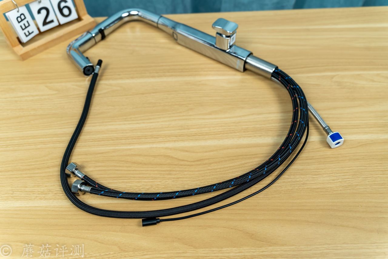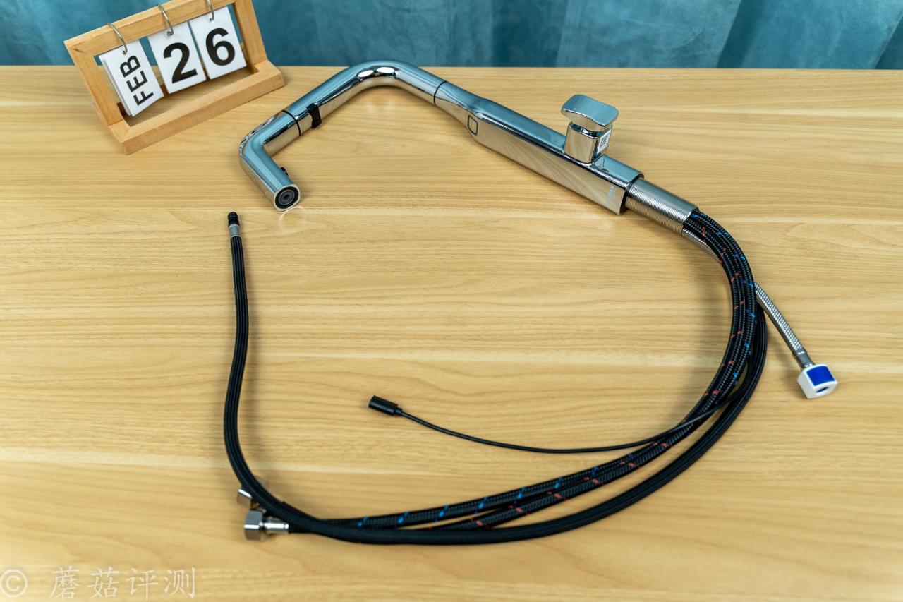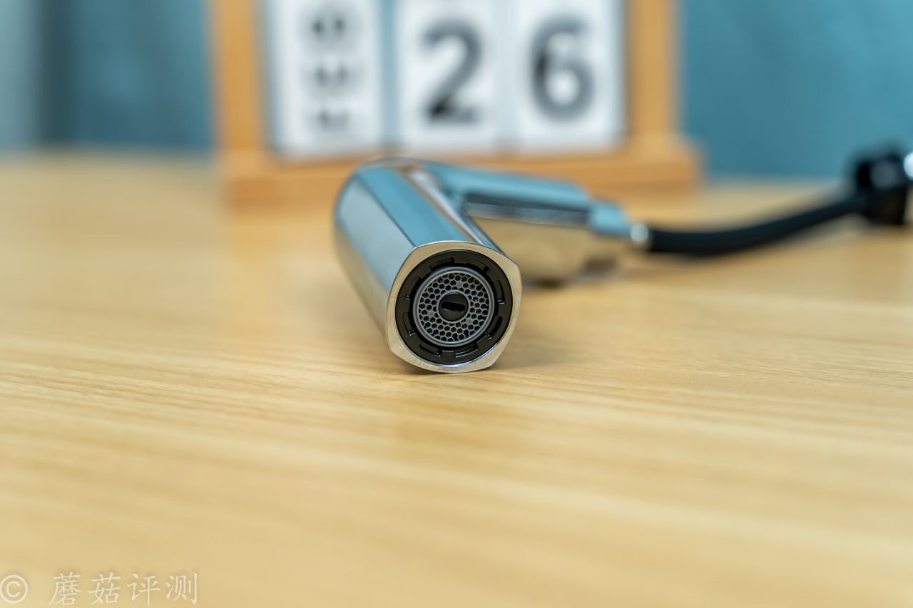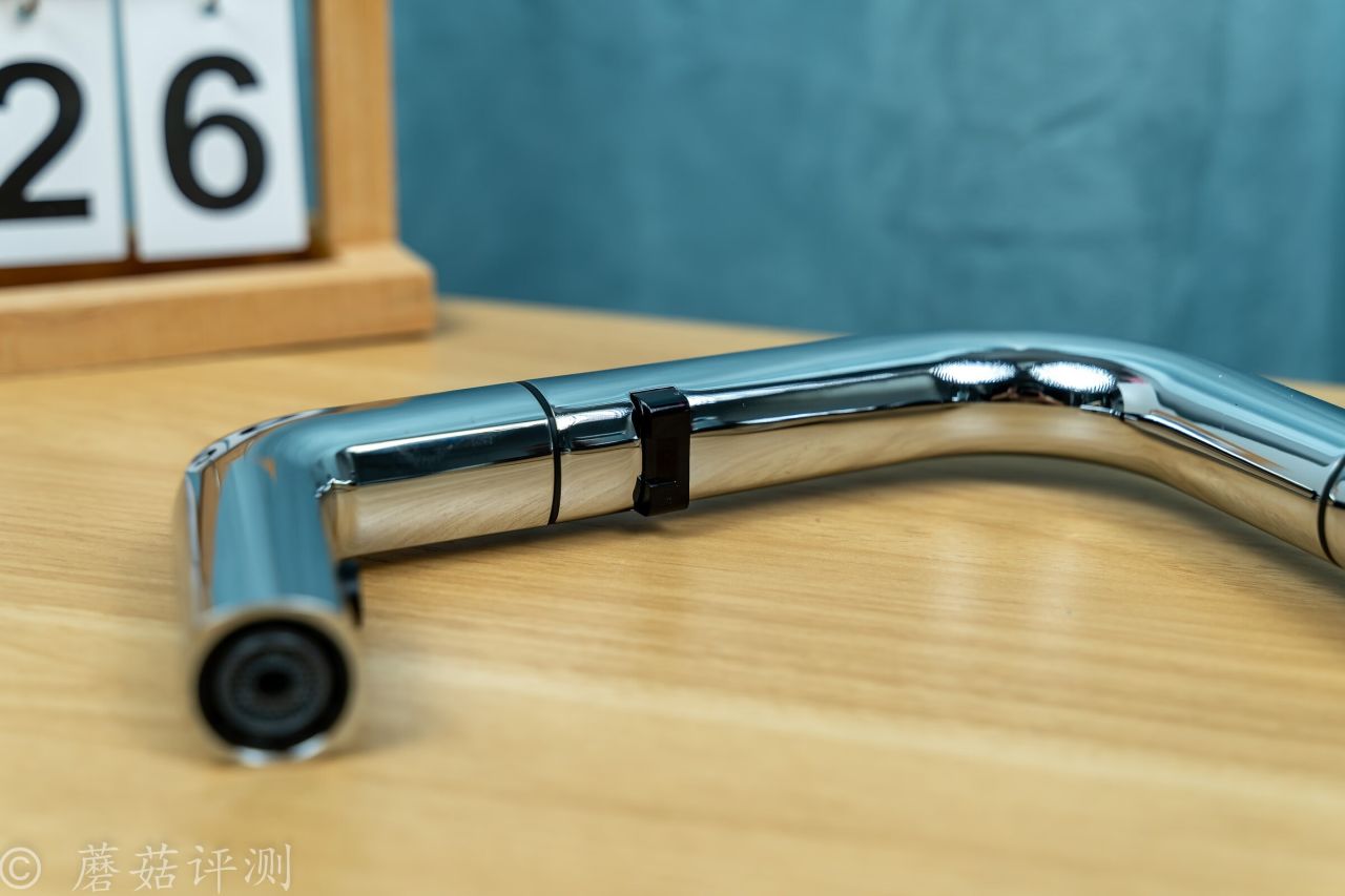 ▼水龍頭的前部支持抽拉,支持抽拉自動出水,日常使用超級方便。抽拉部分的水管非常柔軟,外面有編織網包裹,耐用又順滑。