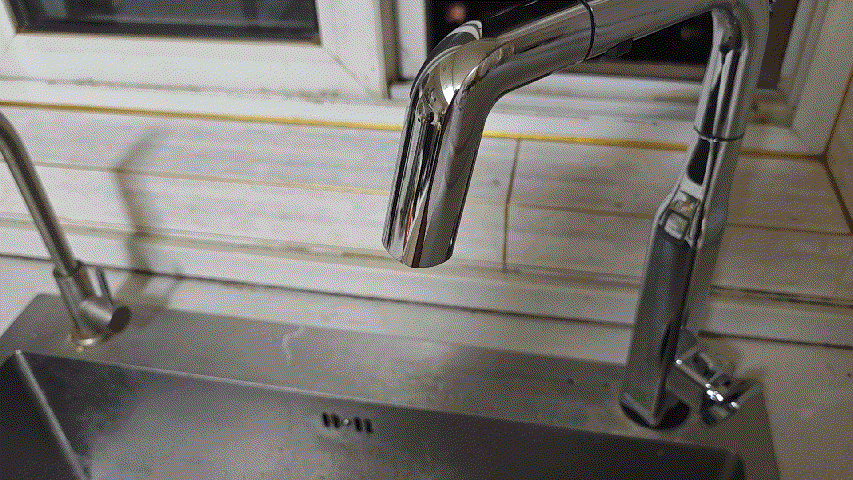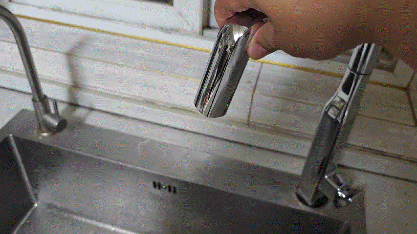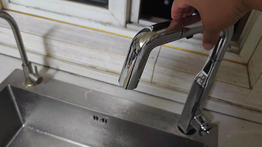 ▼水龍頭的頂部支持抽拉,可以直接把這部分拉出來,方便沖洗水盆。