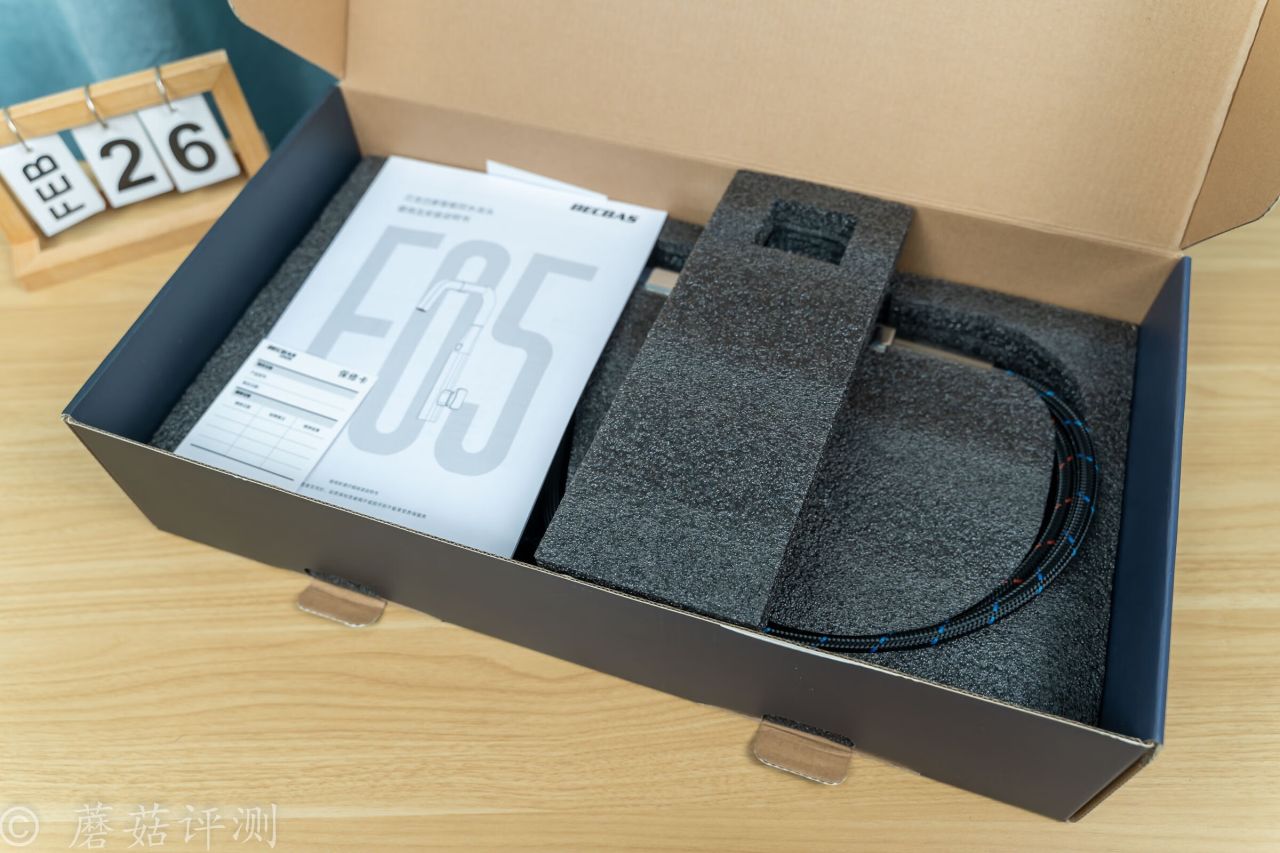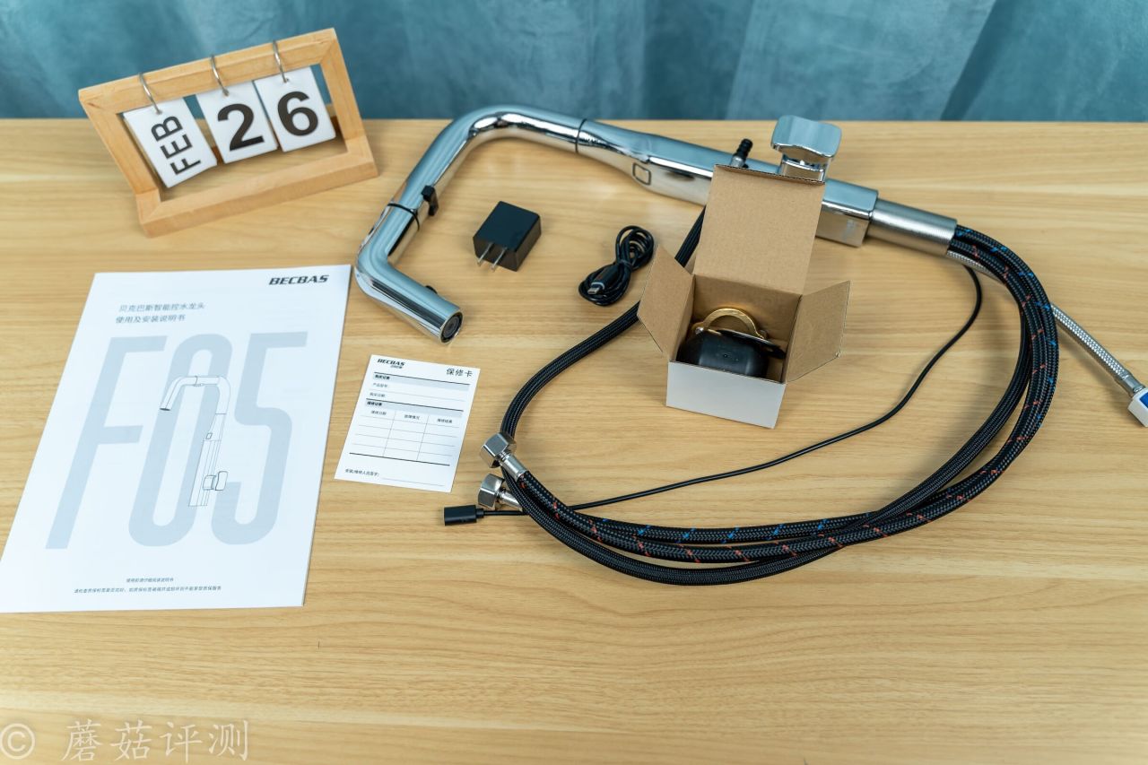 ▼包裝內,除了水龍頭之外,還有一些安裝配件、供電電源和說明書。