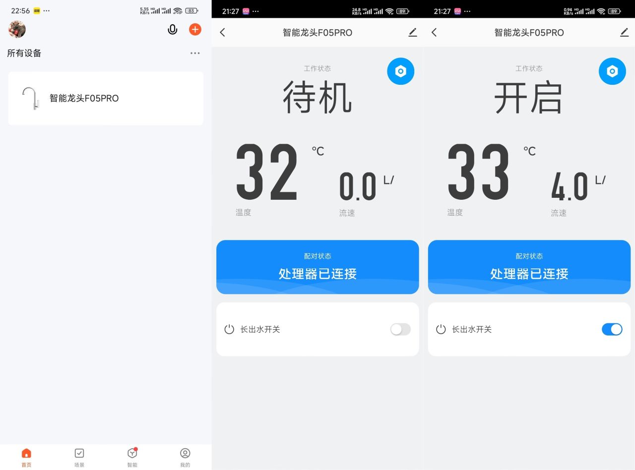 ▼貝克巴斯這款超級感應龍頭F05 PRO支持綁定軟件,下載一個塗鴉APP,就可以輕鬆連接這個水龍頭了。軟件的界面很簡單、明瞭,默認界面可以顯示水龍頭的開啓、關閉狀態,水溫、流量,以及廚餘垃圾處理器的連接情況。