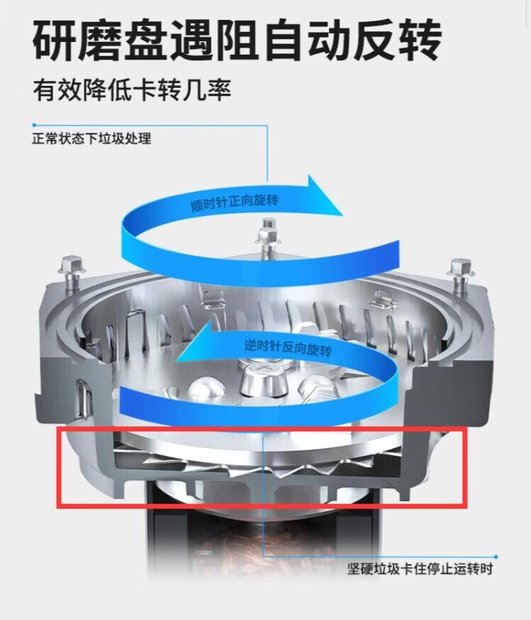 ▼在常規研磨道具金屬盤的底部,加入了一層全新的刀具,這層刀具可以針對常規刀具研磨之後的殘渣進行二次研磨,讓其更加細緻,更容易排出。