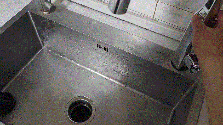 ▼除了無接觸操作之外,水龍頭上的按鍵也可以操作,單擊回自動出水,然後啓動廚餘垃圾處理器。再次單擊會關閉,操作非常簡單、直觀。