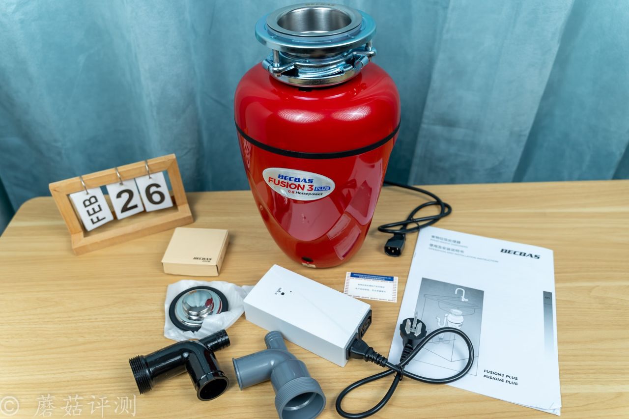 ▼包裝盒內,除了廚餘垃圾處理器之外,還有非常豐富的配件,包括水盆配件、下水配件、供電、遙控開關和說明文件之類的。
