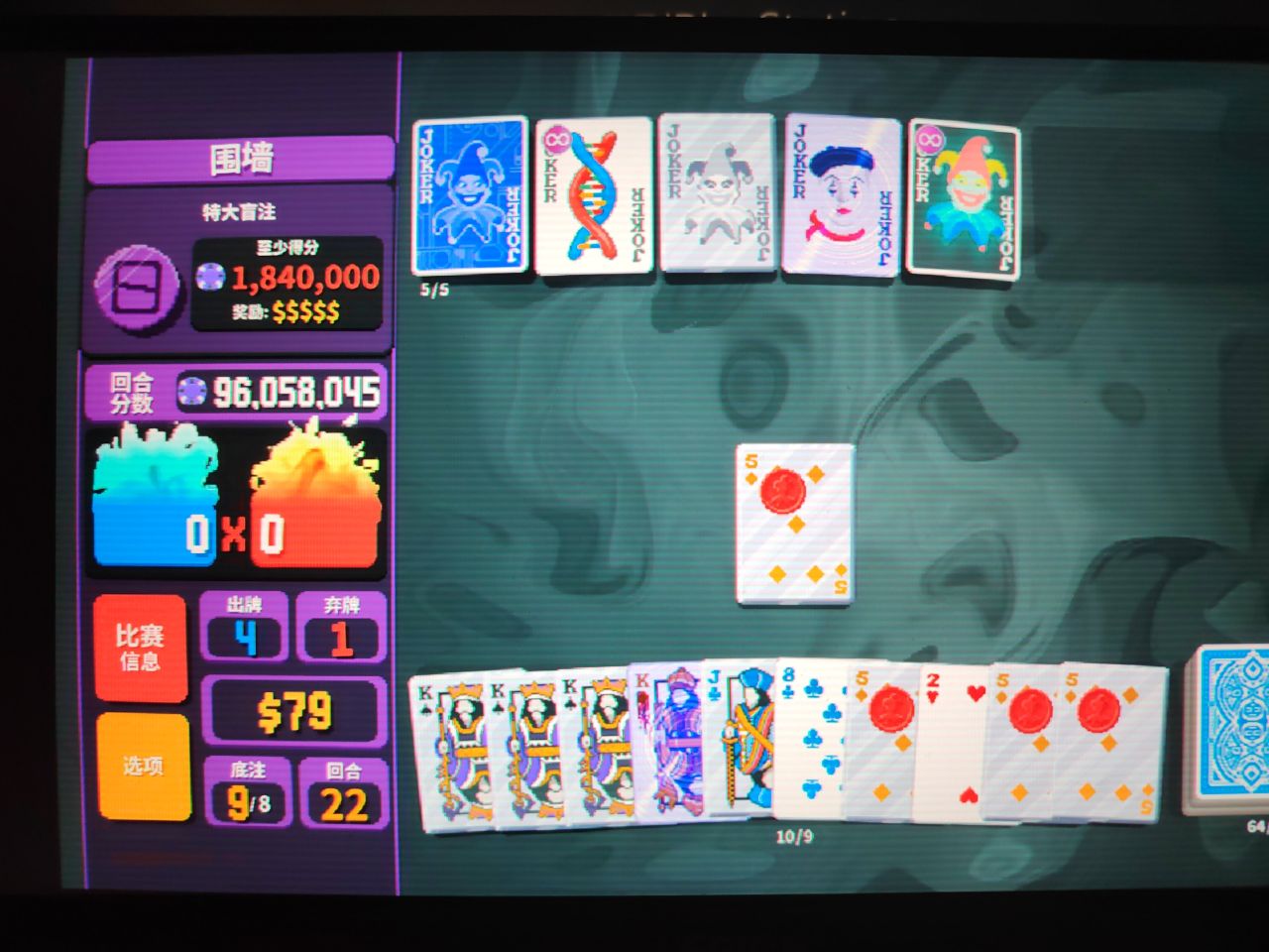 剛剛打完一把,玩小丑牌50個小時以來最爽的一把,已經迫不及待要記錄一下。順便保留一下種子,以後還想爽的時候再玩玩。