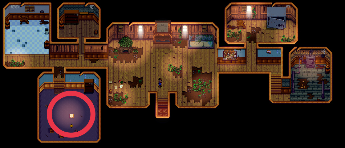 魚缸會被修復,當天晚上睡覺時,位於礦井左邊的那塊巨石會被移走
