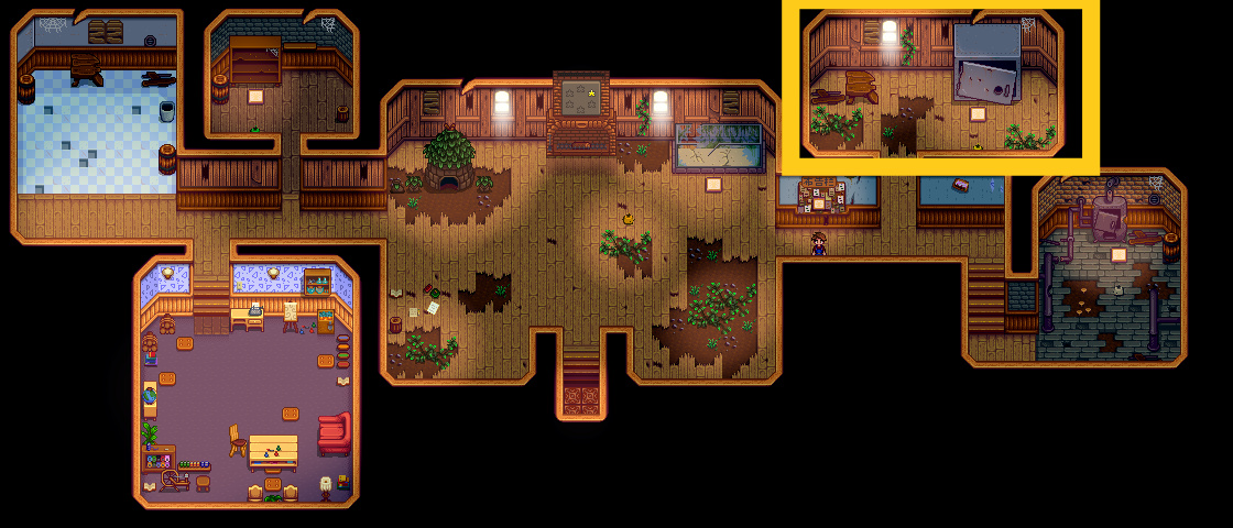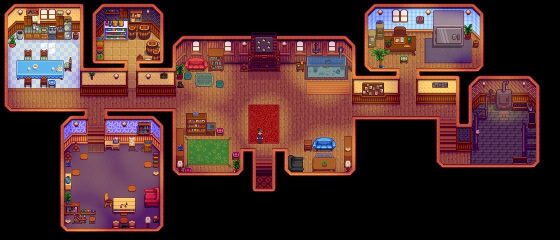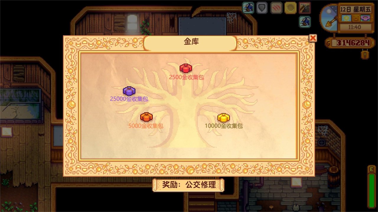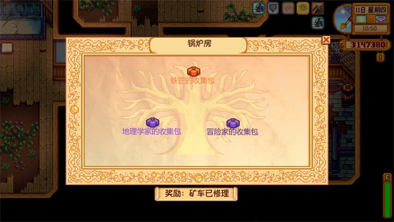 這裏金庫和茶水間是很有用的,鍋爐房也還可以,其它三個你可以隨緣去捐,但金庫和茶水間這兩個是會提高你遊戲體驗的,完成金庫板塊可以開啓沙漠新區域(工藝室板塊和魚缸板塊中含有沙漠區域才能獲取的物品,而且骷髏洞穴就在沙漠,是中後期礦物的主要來源地),完成茶水間板塊可以解鎖溫室(可以種四季的作物,不受季節影響),優先解鎖前兩個,注意每年留點獻祭物品(最好還是注意一下,把獻祭該用的物品都有意的去留一下,但新手隨緣玩也沒什麼問題,我第一次玩的時候,拖到了第二年纔去搞獻祭)