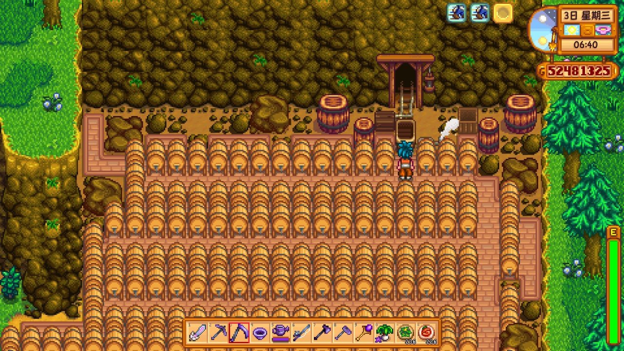 3.有些物品是需要到祕密森林區域獲得的,祕密森林的入口位於煤礦森林的左上角處(農場下方直通到達的地方就是煤礦森林區域了),初次到達煤礦森林的左上角處時,會看到一個大樹幹,把大樹幹砍掉後即可進入祕密森林,大樹幹需要我們的斧頭升級到鐵(鋼)斧頭後才能砍掉(到鐵匠鋪找克林特升級,也可以去搜索椅子法試試能不能卡進去)