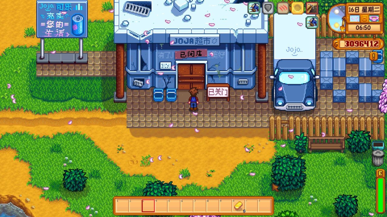 2.完成社區中心所有的收集包後,第二天晴天(如果第二天是下雨天,那麼會推遲到晴天爲止)的任意時間進入小鎮都會觸發一個慶祝動畫(這個慶祝動畫千萬不要跳過!),小鎮的居民都很開心,鎮長劉易斯會送你一個“星露谷英雄獎盃”,隨後joja超市的老闆莫里斯會進來,然後後面都是劇情了,莫里斯會離開鵜鶘鎮,joja超市則倒閉了,劇情結束後不出意外,你會解鎖一個“當地傳奇”的成就(如果你沒跳過這段劇情,應該都是會解鎖的,跳過劇情是不會解鎖的)
